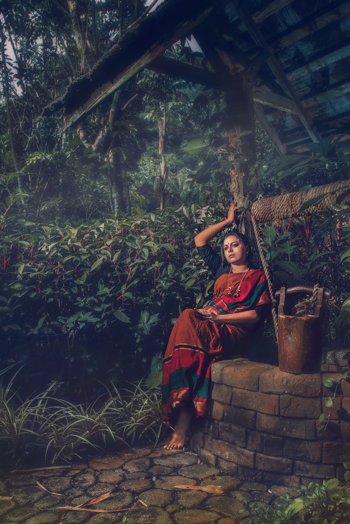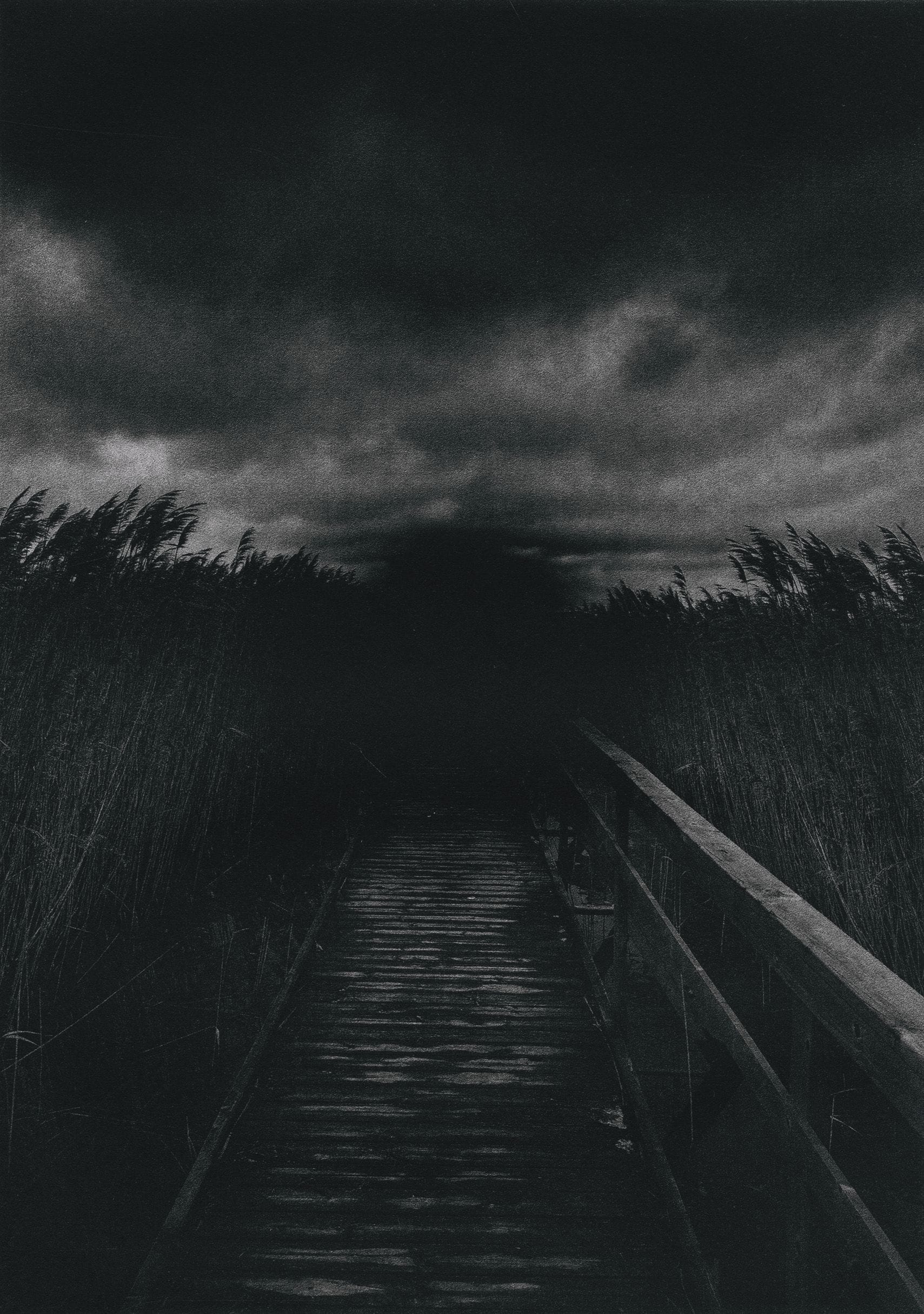 Ganabathi, 2021: 1/5 A perfect; delicate moment shall she opportune to take a break. photography, 76cm x 50cm (left) James Millar: Don Quixote Vl, etching, 15cm x 23cm