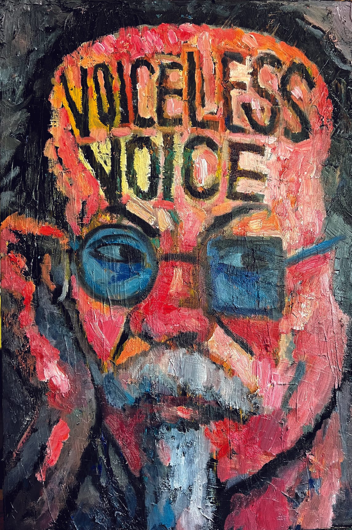 Stephen Menon, 2025: Missing, screenprint on paper, 30cm x 30cm (left) Vasan Sitthilet, 2025: Voiceless voice!, oil on canvas, 40cm x 50cm