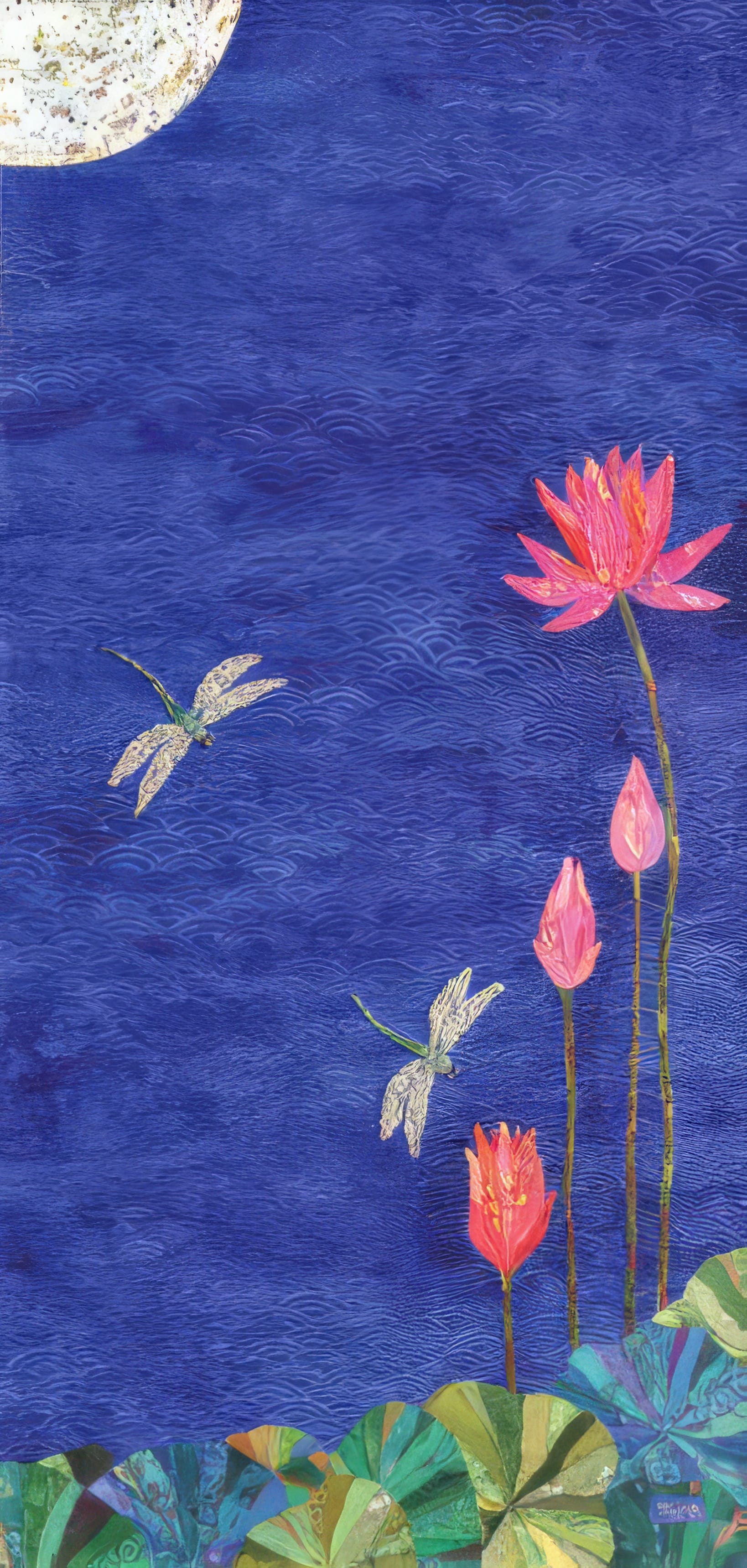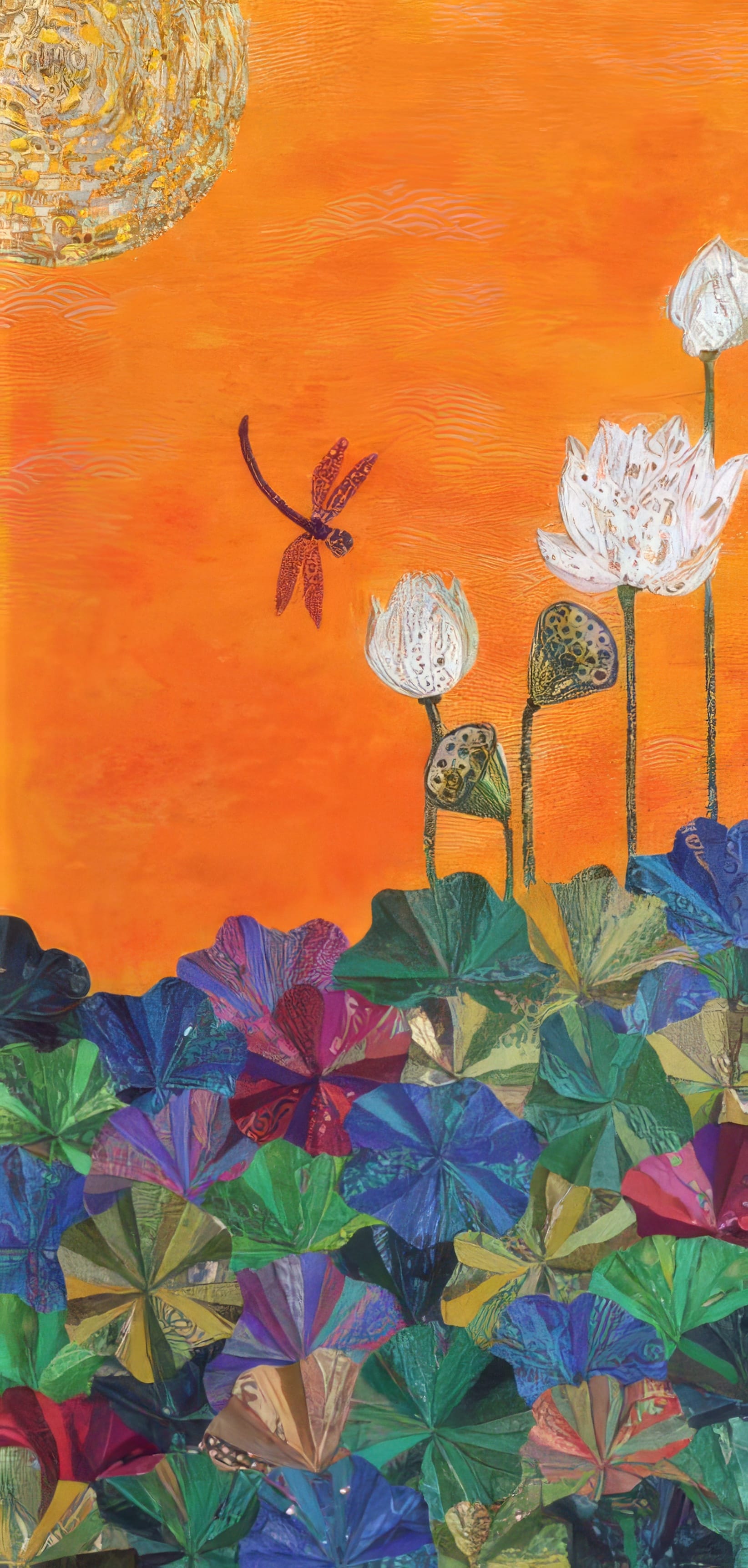 My works here explore transformation through the interplay of natural elements — lotus has its genesis in murky waters, while the dragonfly embodies change, agility, and the ephemeral nature of life. This work is symbolic of my journey of rising as a successful self-taught artist, while facing challenges and self doubts.