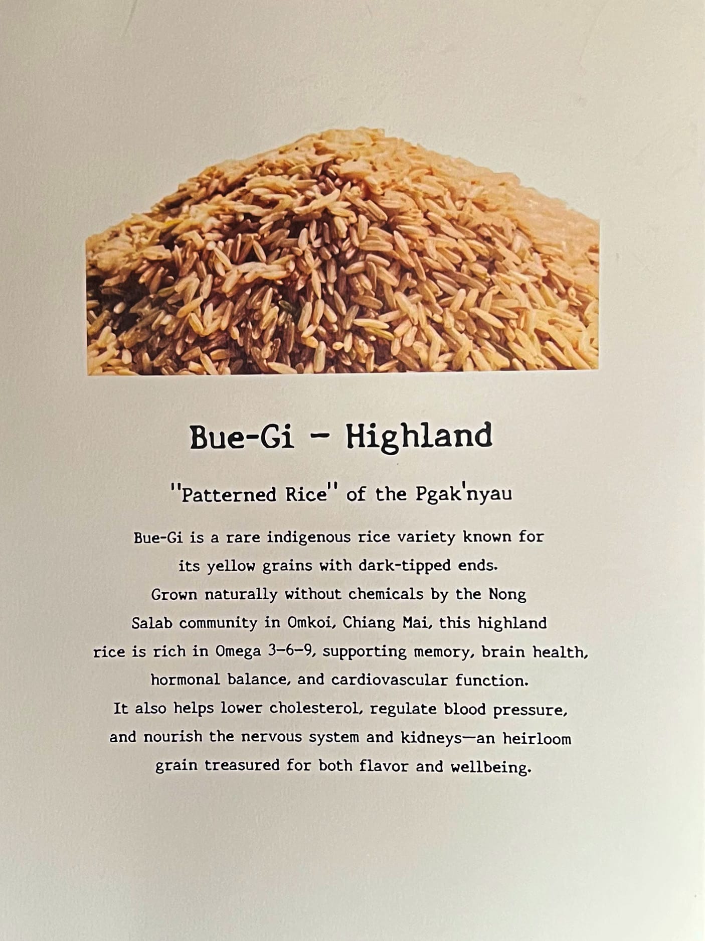 - The rare bue-gi highland rice provides a medium-to-hard texture.