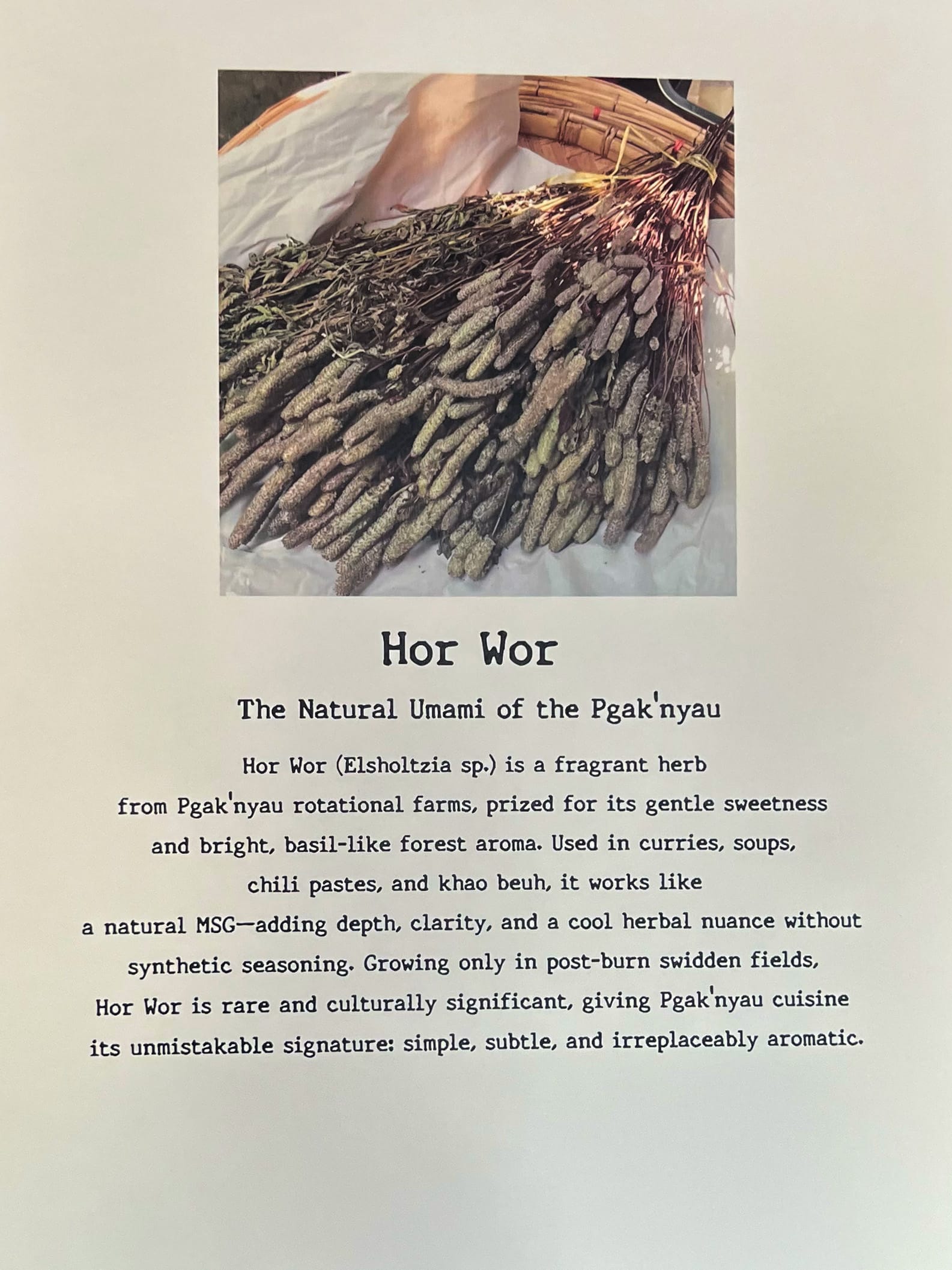 After introducing himself, Chef Eak quickly explained to us a range of ingredients, many of which I had not encountered. Like hor tee la (a fern which adds umami and sweetness to soups) and ba-geu-eur (fermented dried mustard greens with “gentle sour notes” and a smoky scent).