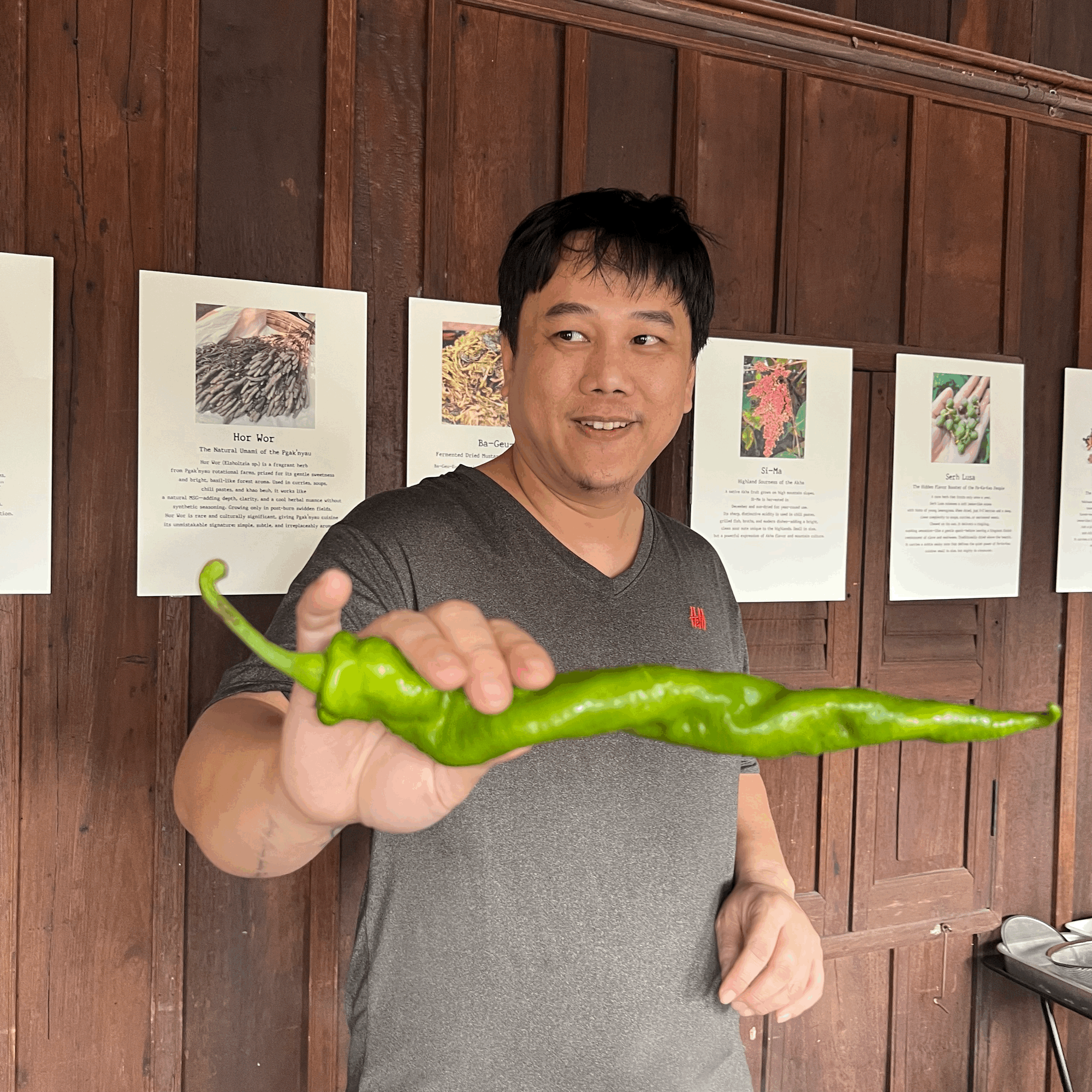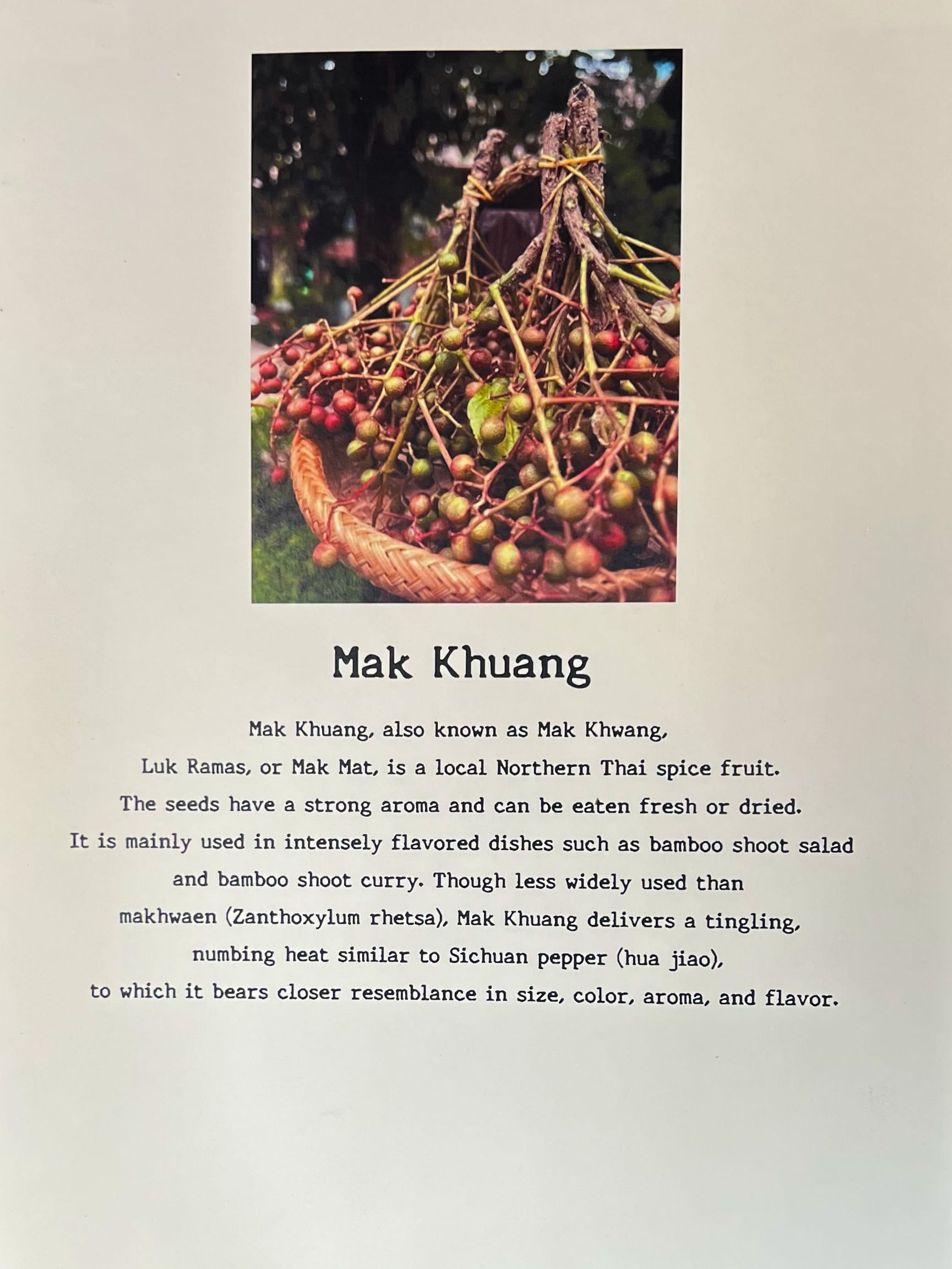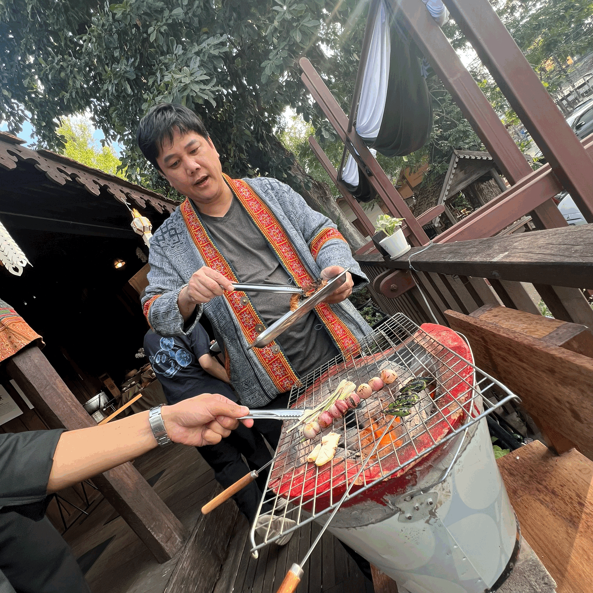 The workshop was held on the verandah of a large, old “kampung house” or “ancient home,” now transformed into a restaurant. With a large backyard facing the Ping River, the property’s heritage status complements Chef Eak’s ventures to seek out Thai ethnic foods and reimagine them.