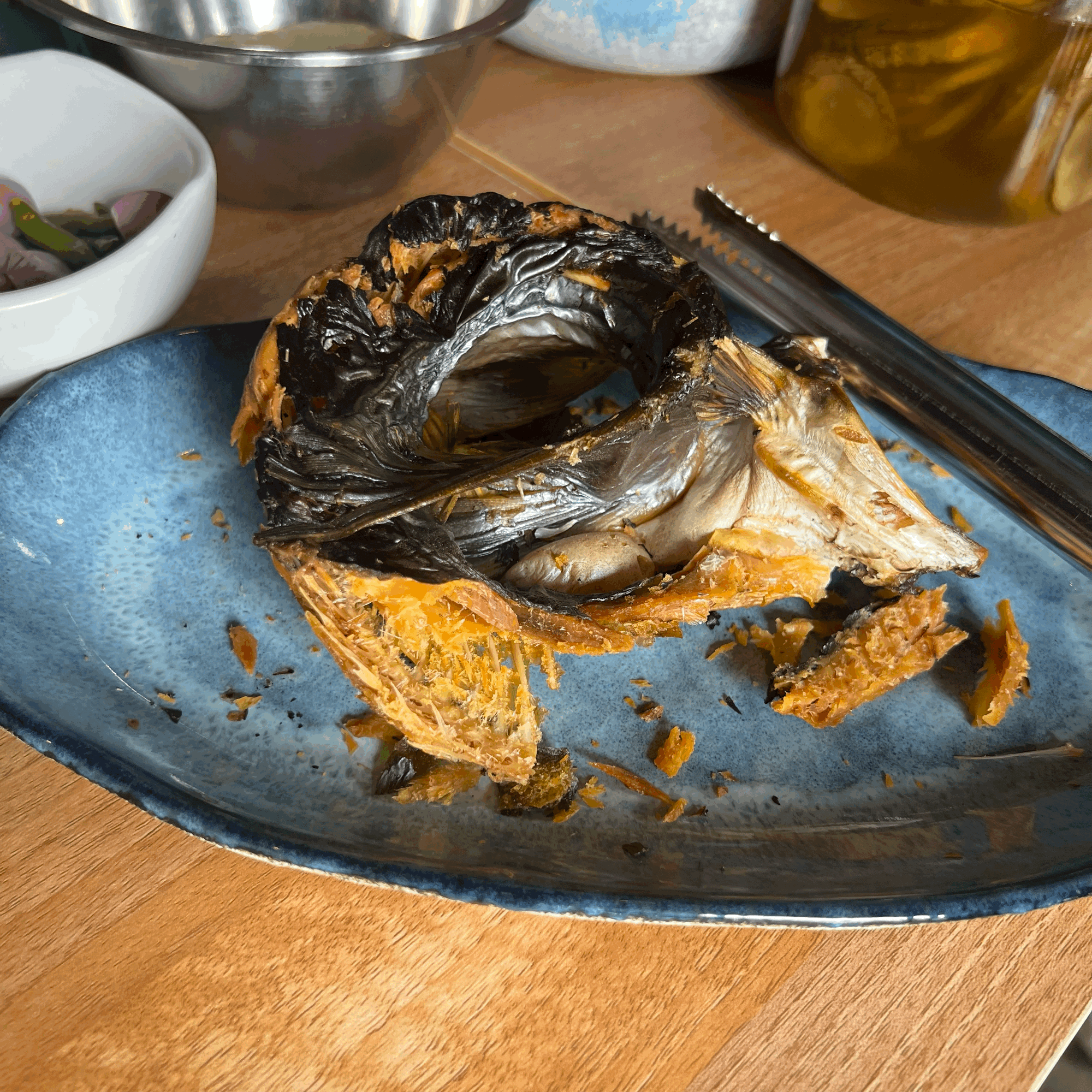 Despite the workshop setting, the participants received five-star treatment at the end. The small portions of risotto were served on large porcelain plates, evoking a course in a degustation menu. Halfway through savouring the rice–fish–pickle–oregano combination, the clear fish soup, now infused and strained through fresh herbs, was poured over the dish, adding a deeper, more nuanced layer of complexity.