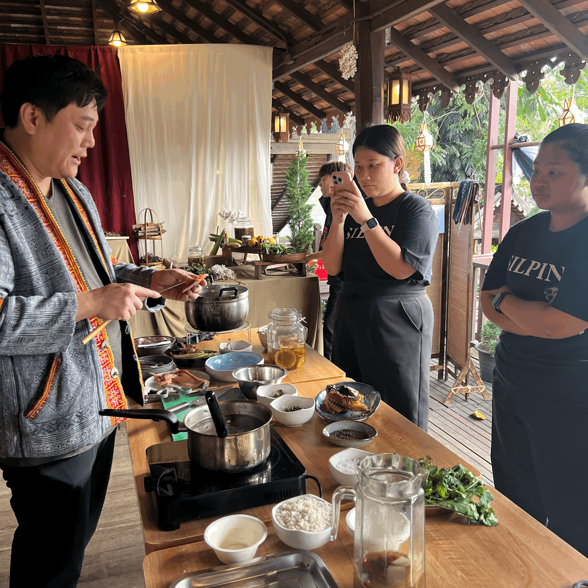 CHEF EAKPOL “EAK” PICHWONG, who owns the Michelin-recognised Ekachan Restaurant in Chiang Mai, transforms Thai ethnic cuisine into culinary art forms that suit the palates and mindsets of visitors – local and foreign alike. One example is his Karen-inspired risotto with fish soup, on which he led a workshop.