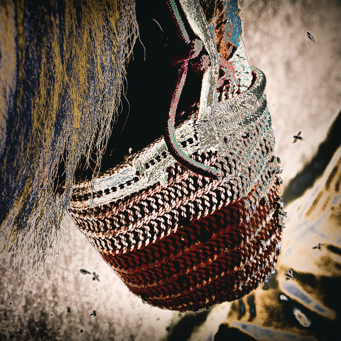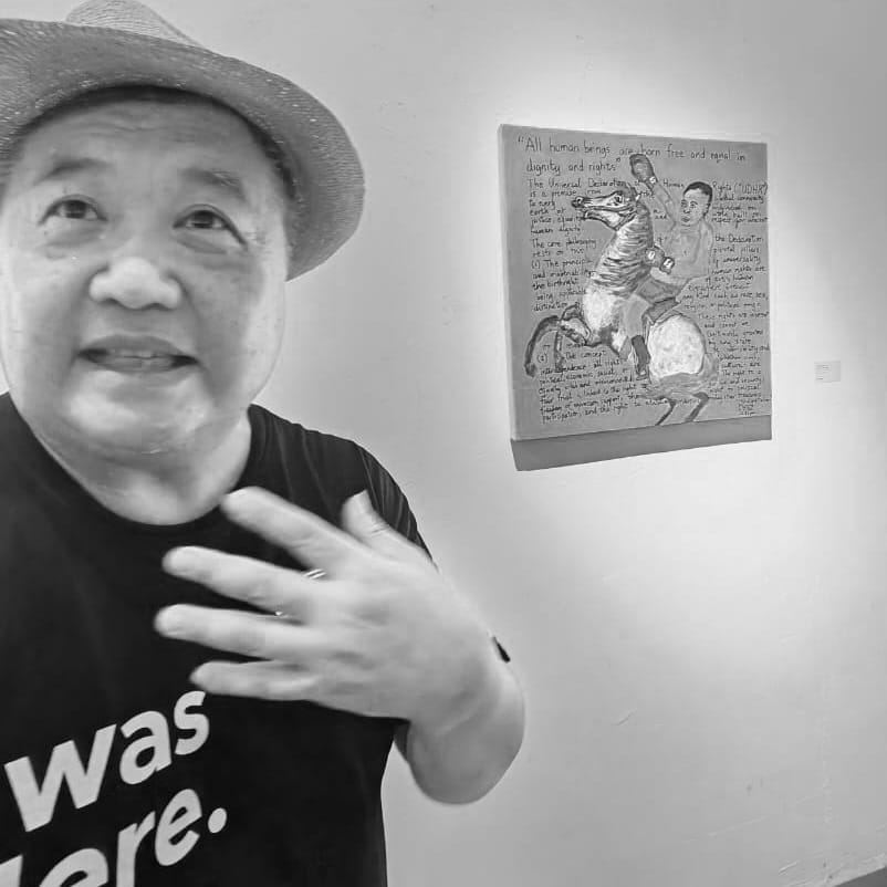Choy Khye Fatt, 2025: Muffled, mixed media on jute, 60 cm x 60 cm; Sandru, 2026: Live like horse, acrylic on canvas, 61 cm x 61 cm
