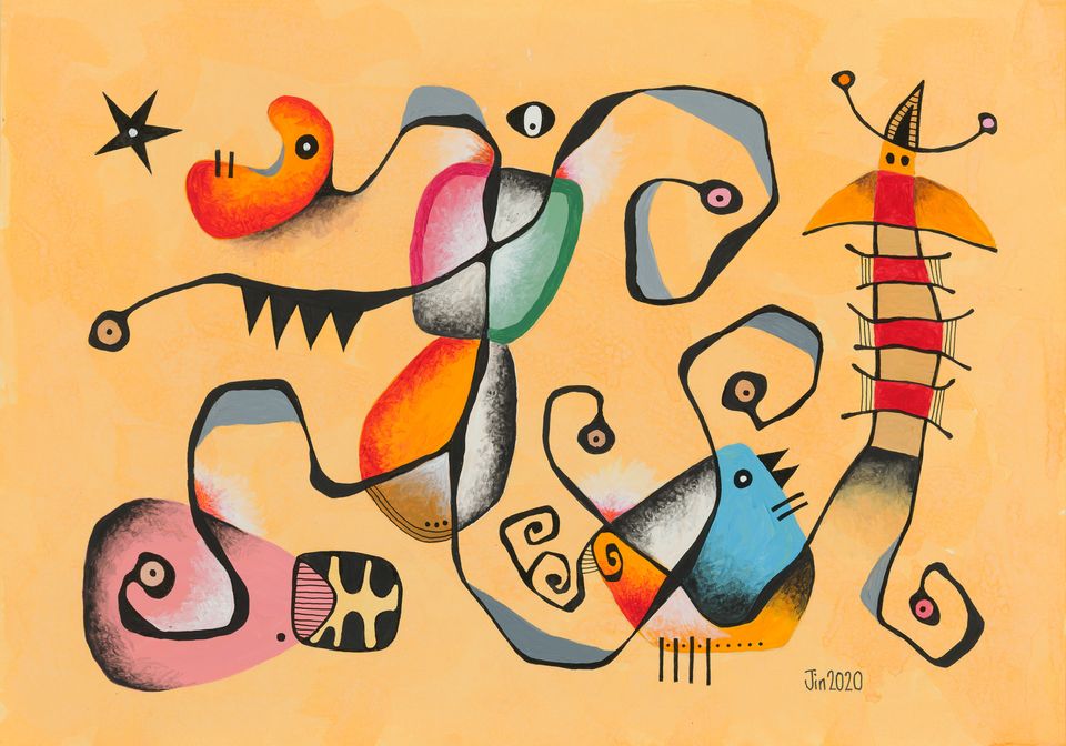 He explains, “During Covid-19, I didn’t want to fall into negativity. I could have painted people in agony, for instance. I decided not to dwell on that but to paint something nice and whimsical.”