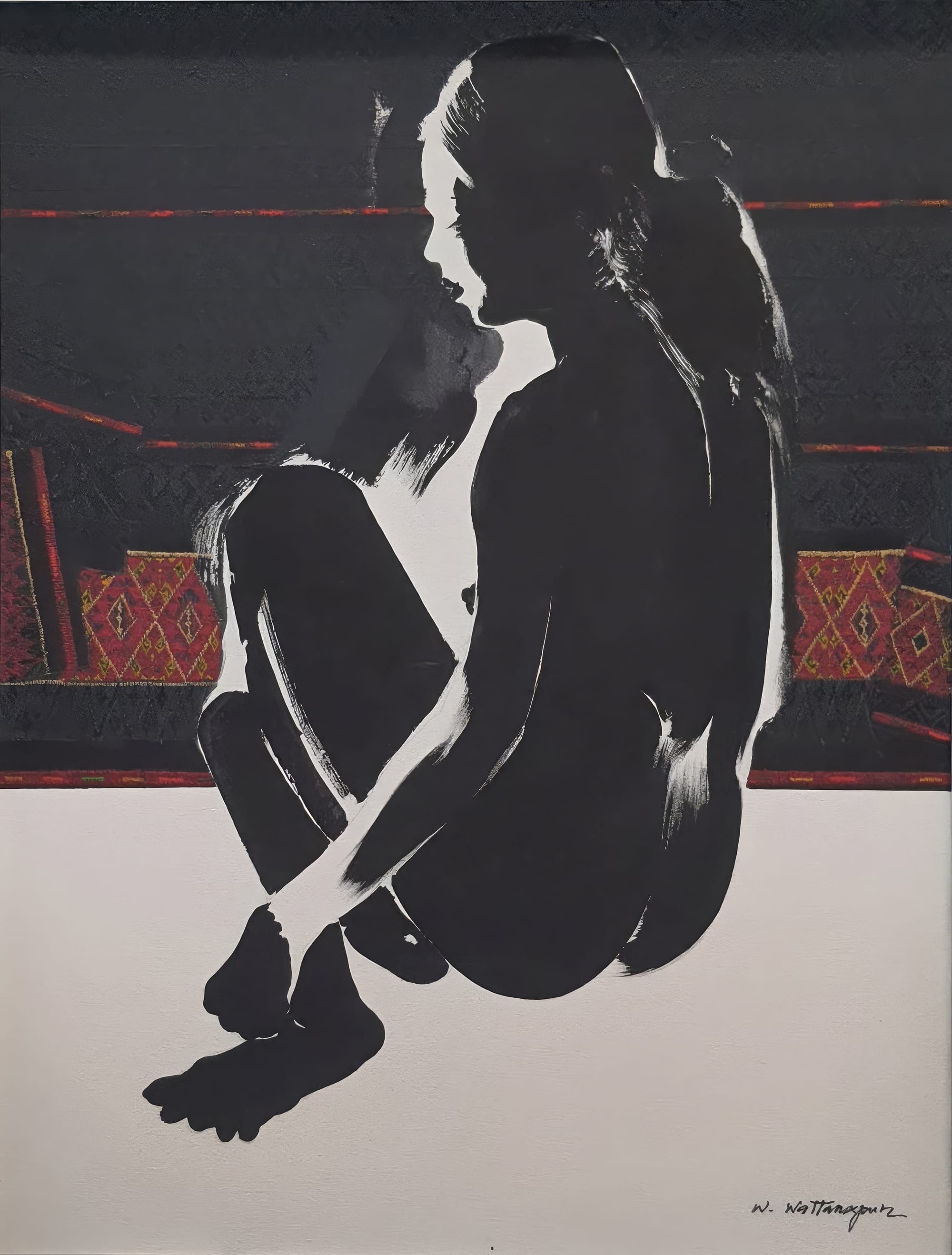 Wattana’s art often navigates the tension between modern artistic freedom and traditional values. Educated at Silpakorn University and the Rhode Island School of Design, he developed a modern appreciation of the human form. Many of his pieces in the 1960s involved nudes on huge canvases.