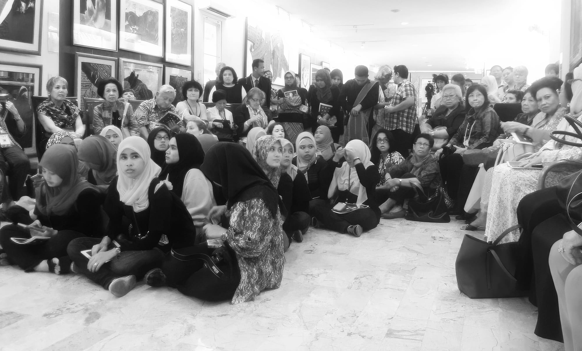 This perspective has occasionally conflicted with religious sensitivities. In Terengganu, for example, some Muslim audience members left a presentation due to the presence of partially uncovered women. “But luckily, during the question and answer session, a woman raised her hand and said, ‘I noticed you use a lot of women in your work. Why?’ I thanked her; I was so happy [that] she asked, that she didn’t just walk out. Then I answered her question with another question: ‘Who weaves the textiles?’ They all started nodding. They knew. Men don’t do it. It’s the women.”
