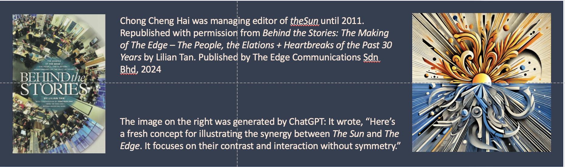 There was a time from 2002-08 when the nation was at the cusp of consolidating a new media group. theSun and The Edge were at the centre of this movement. But it was not to be. This is an insider story of how theSun developed, and later with The Edge at its helm struggled valiantly, rose to the “zenith” and, sadly, eventually, lost.